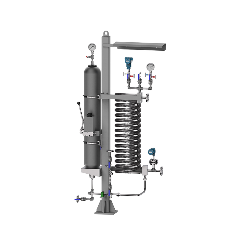 •产品由气囊式蓄能器+冷却器+测量控制部分+管路系统组成;所有组件都集成到支架中,结构紧凑,易于现场安装。